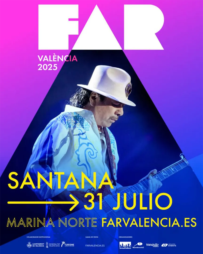 - Carlos Santana (31 julio): leyenda del rock latino con su gira Oneness Tour, celebrando los 25 años de Supernatural.